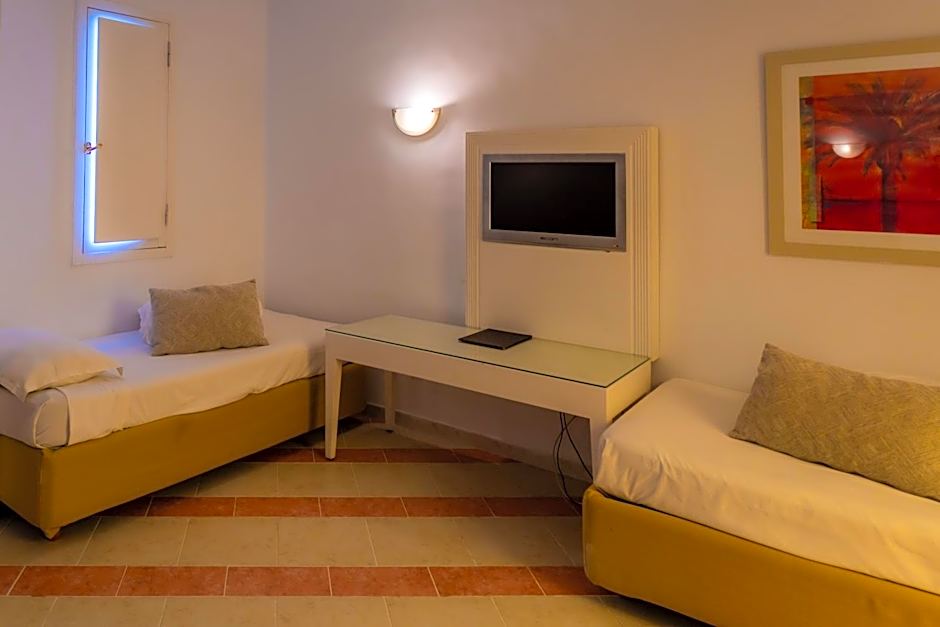 The pool with a view and sauna are the standout features of this triple room. The spacious triple room features air conditioning, a mini-bar, a balcony with sea views as well as a private bathroom boasting a bath.